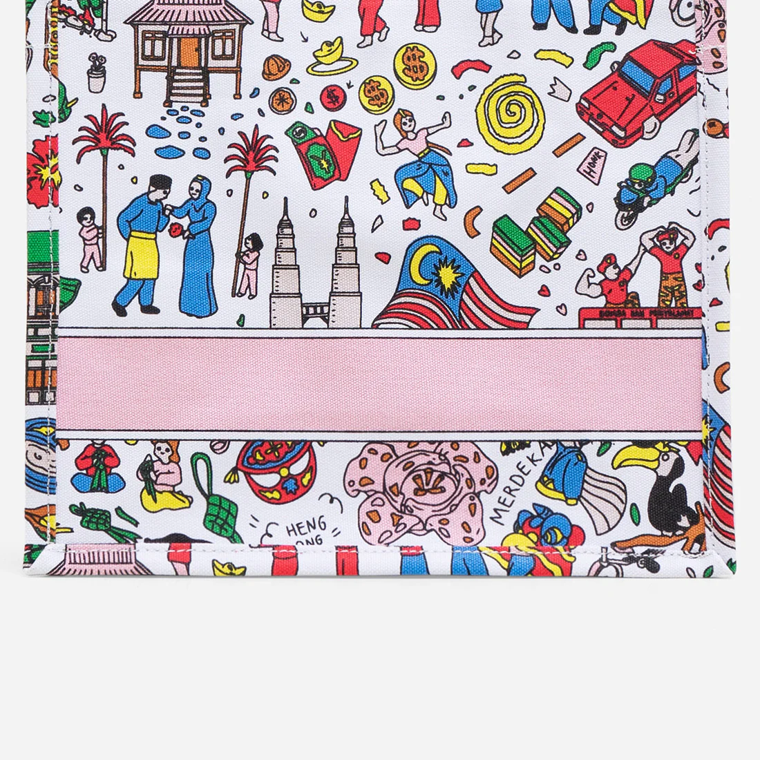 Christy Ng's Merdeka Tote Bag Series is a celebration of the harmonious and diverse multi-ethnic culture of Malaysia. The flat illustration of the iconic food and celebrations in bold colours perfectly encapsulates the cultural diversity and charm of Malaysia as a nation.
