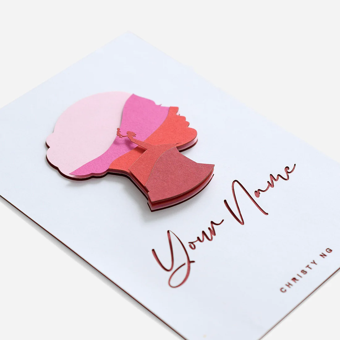 This card is a tribute to all the mothers out there away from their children. We live in an unprecedented and challenging times now. With the travel restrictions and social distancing in place, many of us are unable to see our loved ones especially for those of us working away from home and family. The face silhouette of the card consists of 3D layers of shades of red and pink, which symbolizes the never-ending layers of love, passion and care of all mothers. The silhouette of a mother holding up her child up symbolizes the undying love of a mother to her child since they were born.